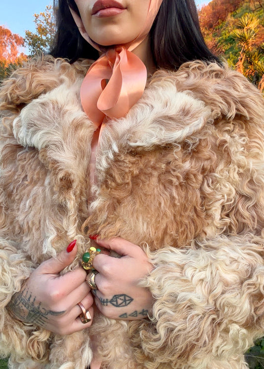 Gorgeous Authentic Vintage 1970’s Curly Mongolian Lamb Tibetan Fur Coat with Rare Color-Way