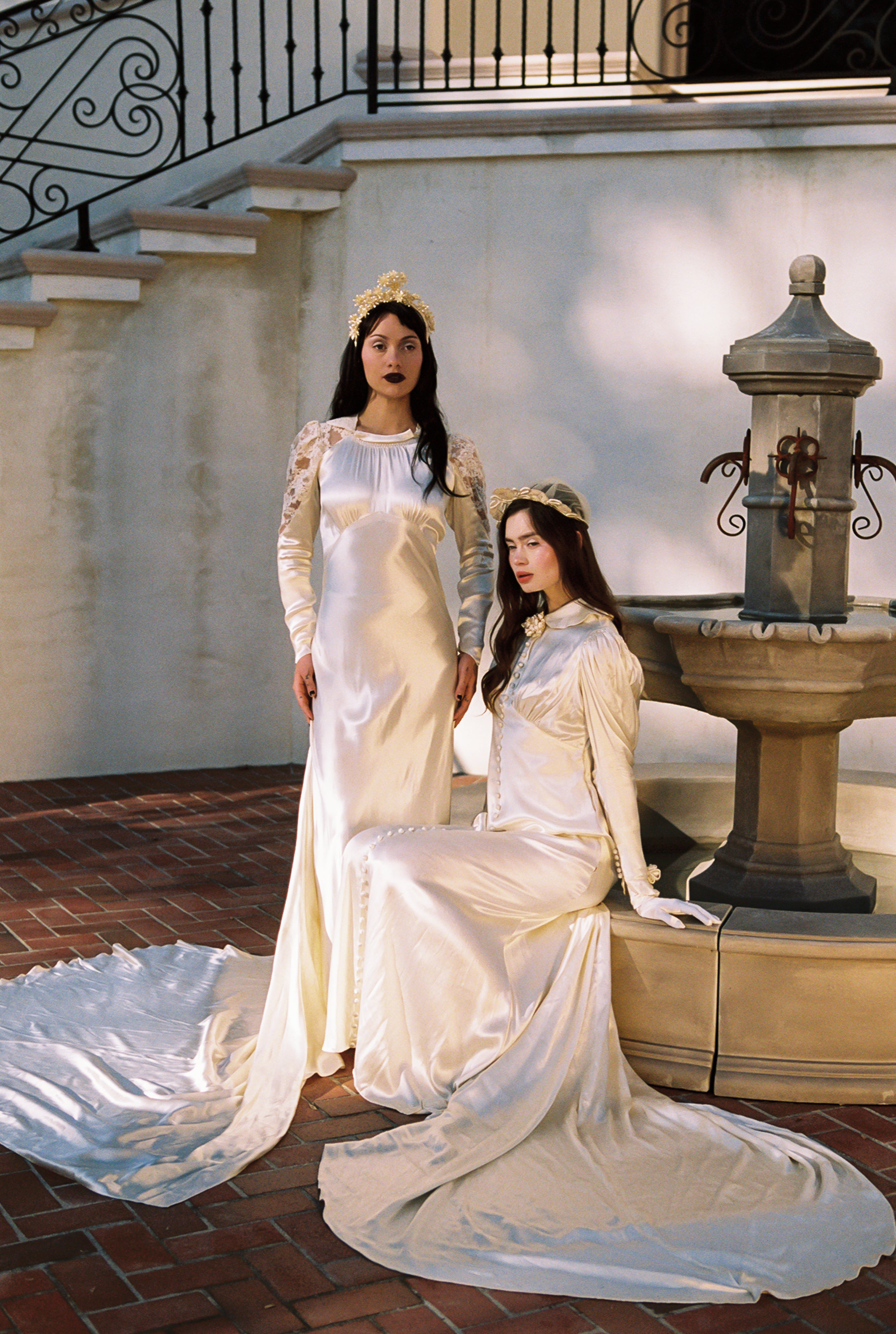 Romantic Antique 1930's Bias Cut Silk Satin Charmeuse in Candlelight Wedding Gown with Unique Chapel Train - Rare size M/L