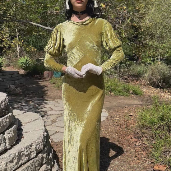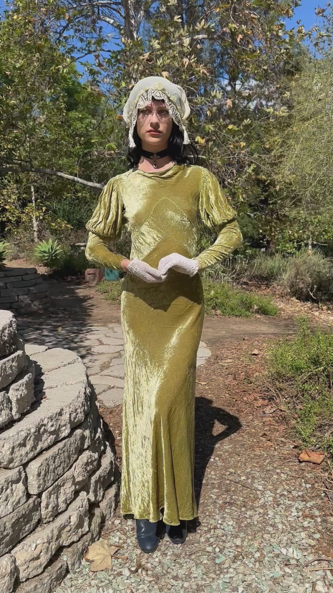 Extraordinary Antique 1930s Olive Silk Velvet Gown – Art Deco Elegance One-of-One