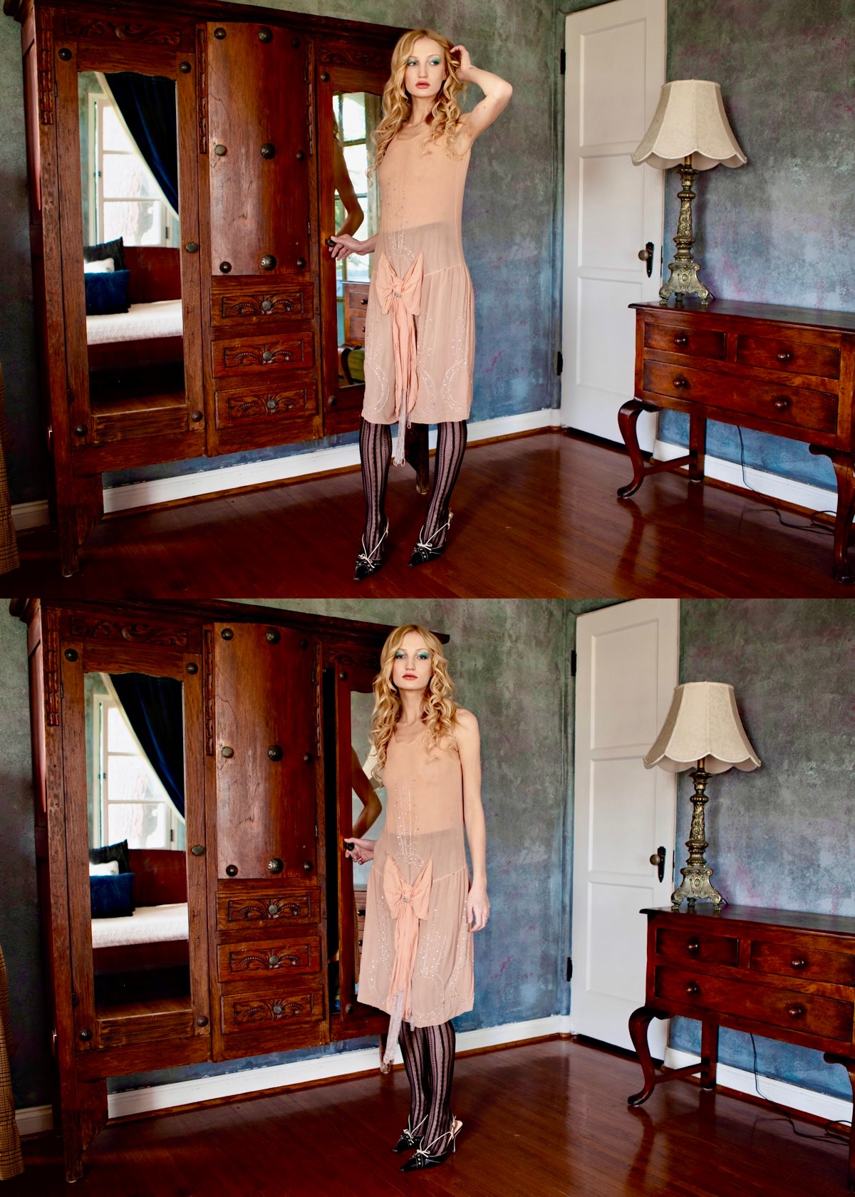 The dress has no hooks, it just slips on and slips off (quite easily). The silk is delicate, yet sturdy. This antique heirloom has a lot of life left in her and can be worn for a plethora of occasions, including wedding related events. Fashion historians, collectors of antique 1920's dresses, and those of you who have been looking to treat yourselves with something heavenly, you need this romantic and irresistibly feminine work of wearable art.
